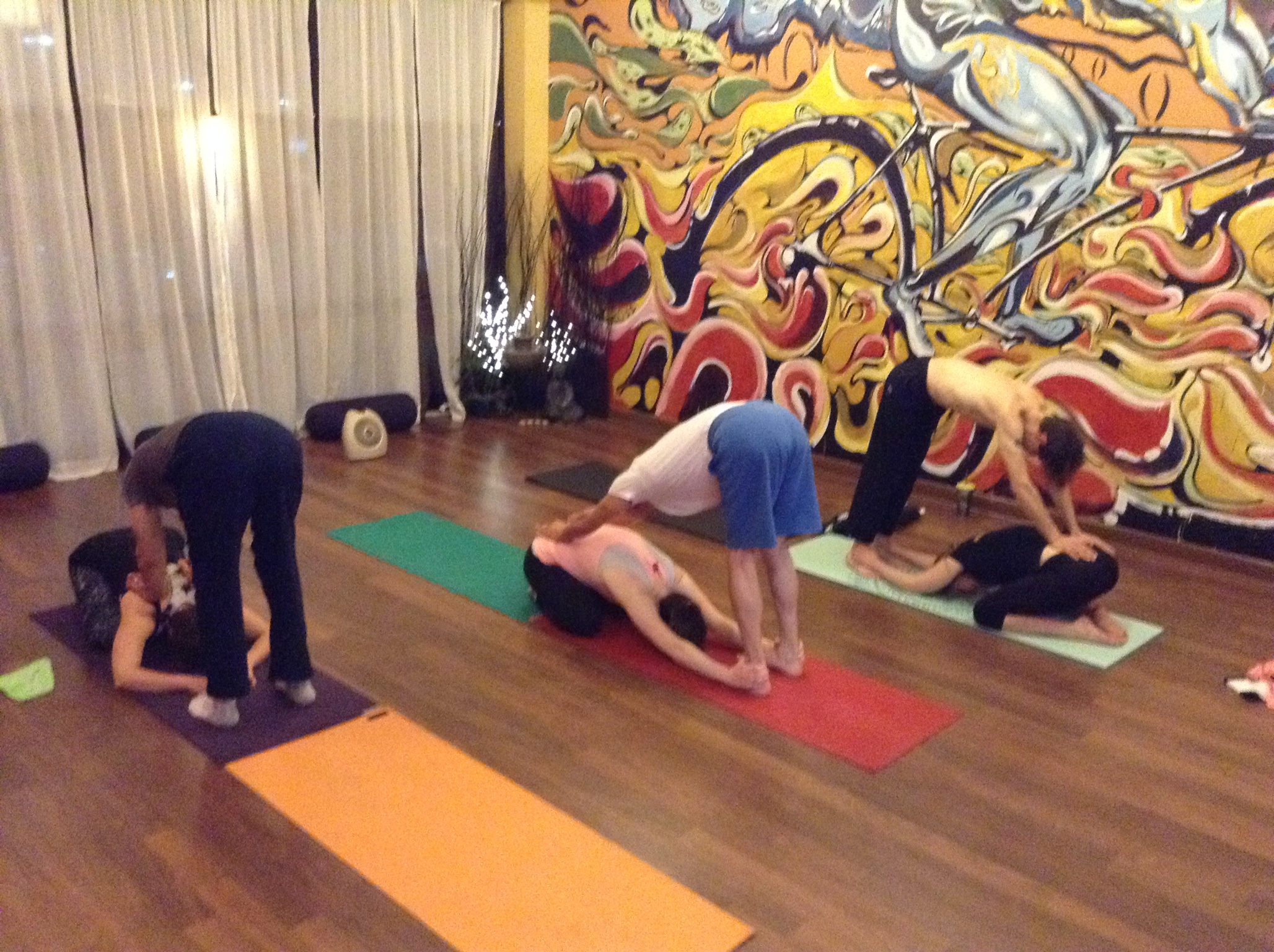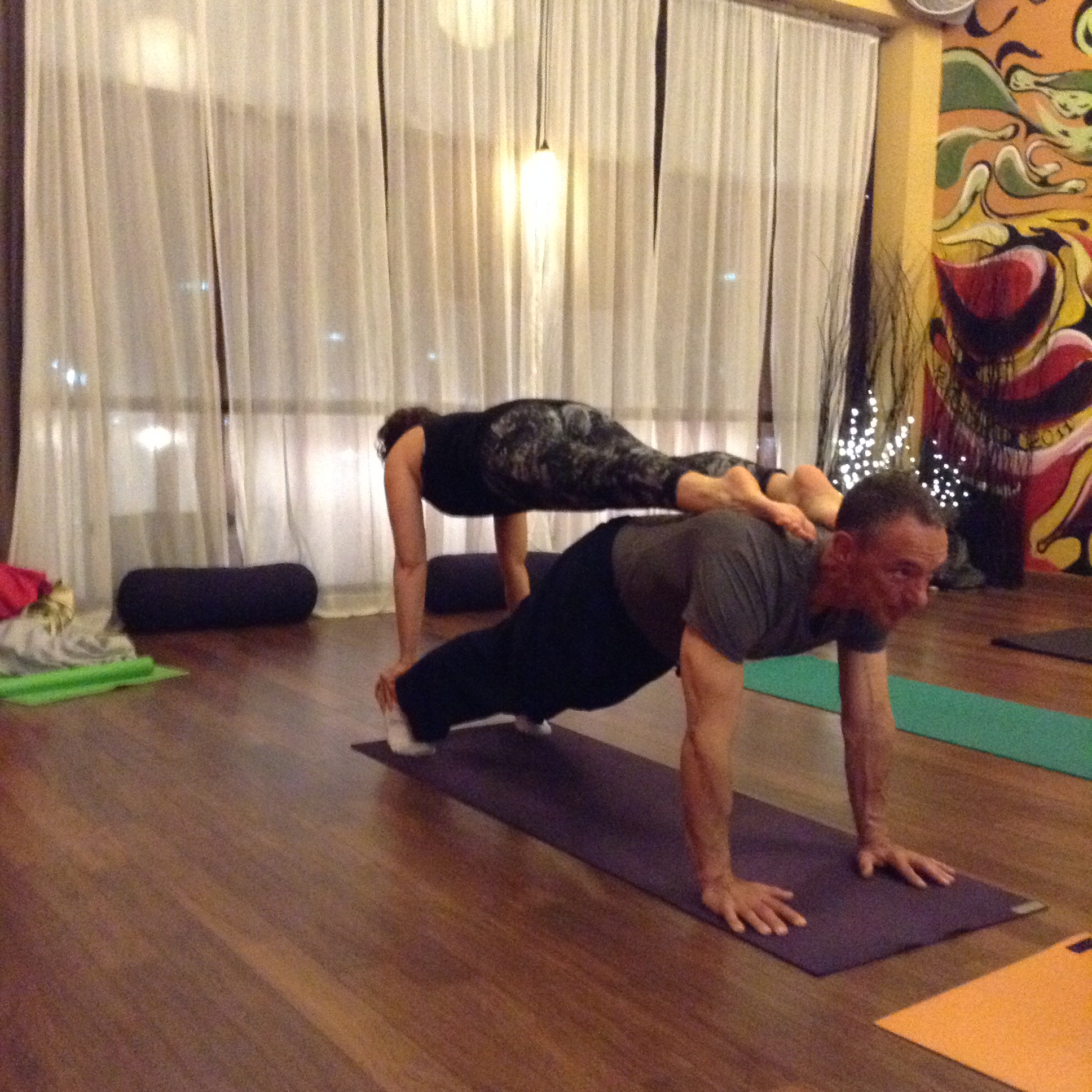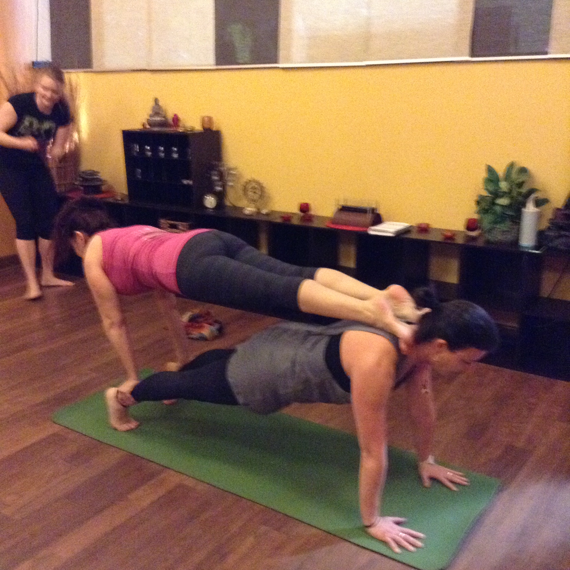 Partner Yoga Feb. 13th Partner Yoga Leaf Leslie and Heather Plank Stack Brian and Bridget Double Down