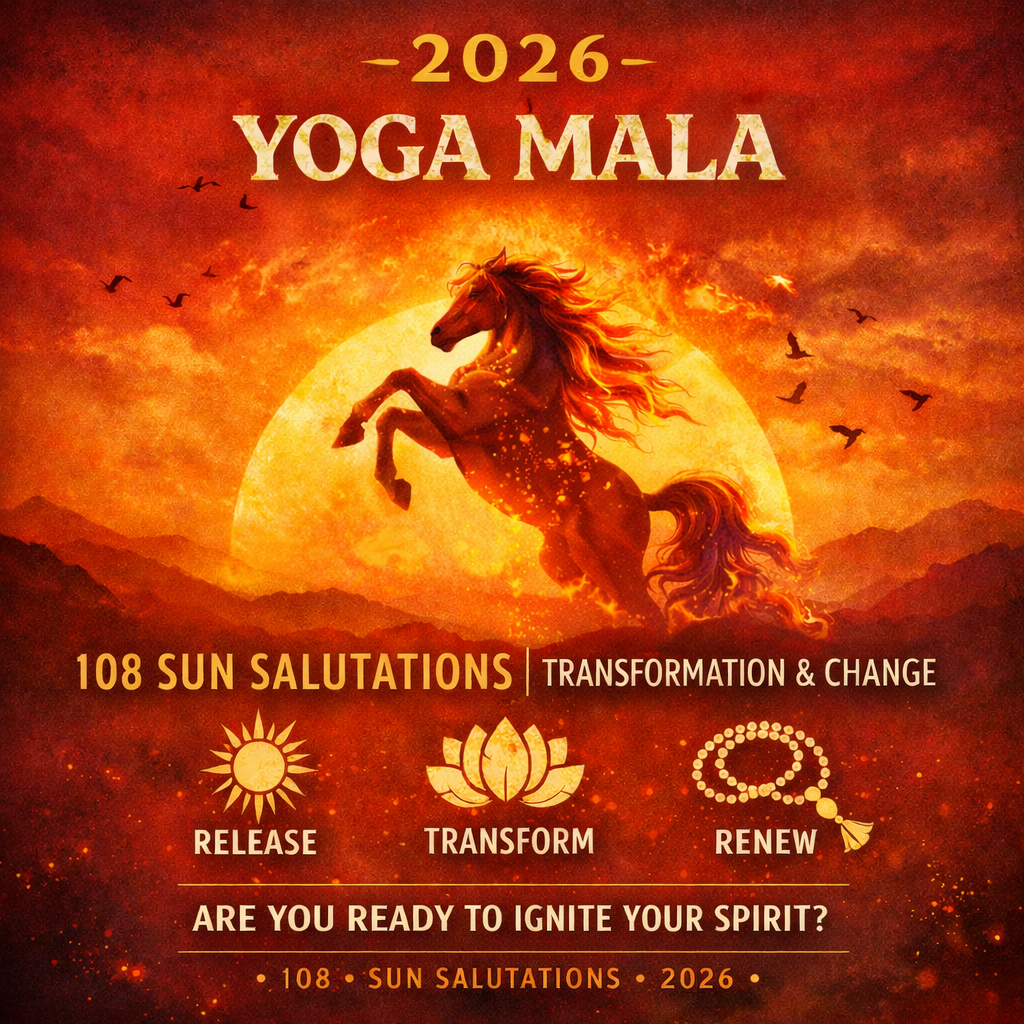 Start your year with intention, courage, and community by celebrating the ancient tradition of 108 Sun Salutations this New Year’s Day! Join us in welcoming 2026 — the Year of the Fire Horse with a powerful Yoga Mala, a moving meditation of 108 Sun Salutations honoring transformation, courage, and forward momentum.